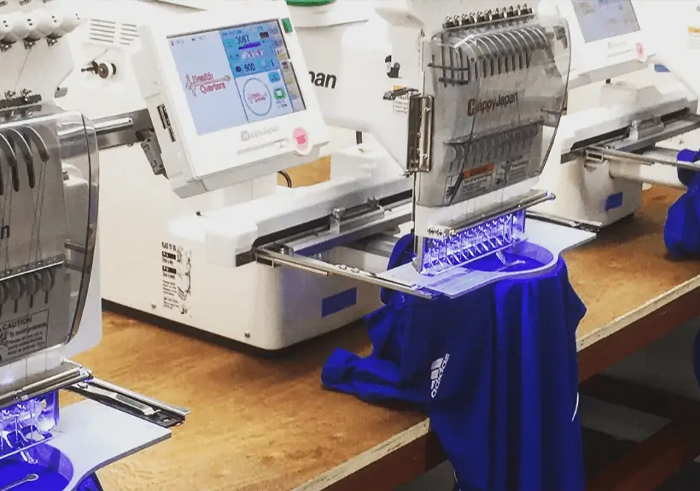 For additional custom branding or numbering, our DTF (Direct-to-Film) and vinyl heat transfer department applies logos, names, or numbering onto finished garments.